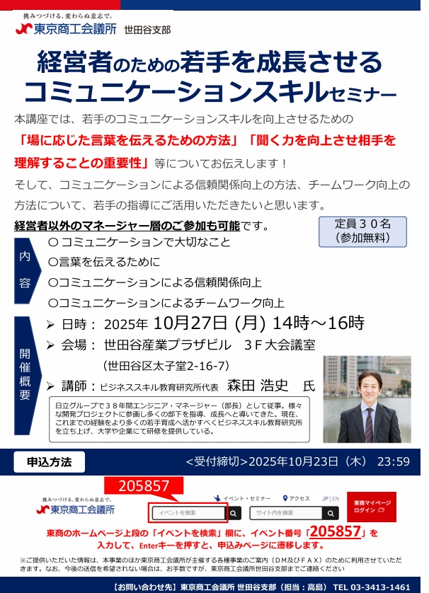 東京商工会議所 世田谷支部 『コミュニケーションスキルセミナー』2025年